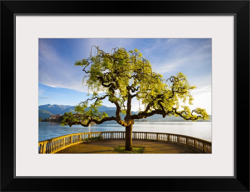 <p>Idyllic lakeside park and Isola Bella, Borromean Islands, Lake Maggiore, Piedmont, Italy.</p>