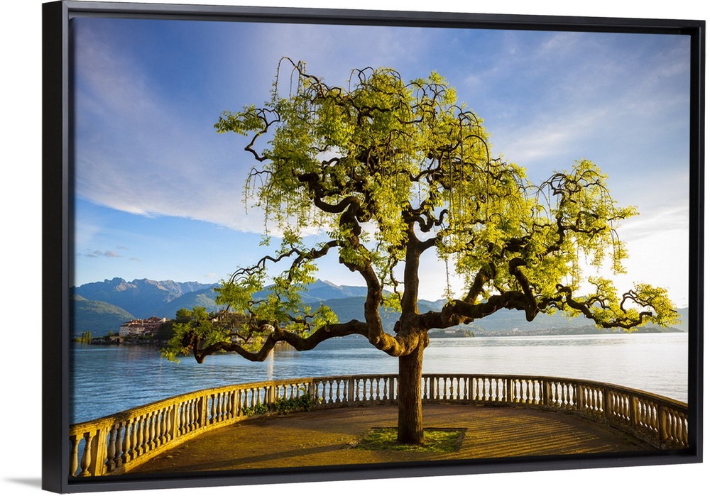 <p>Idyllic lakeside park and Isola Bella, Borromean Islands, Lake Maggiore, Piedmont, Italy.</p>
