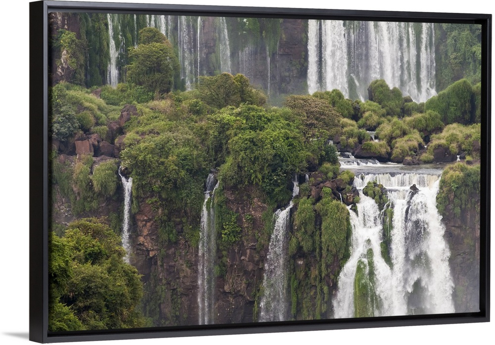 <p>Photograph of massive waterfalls flowing down over lush jungle cliffs.</p>