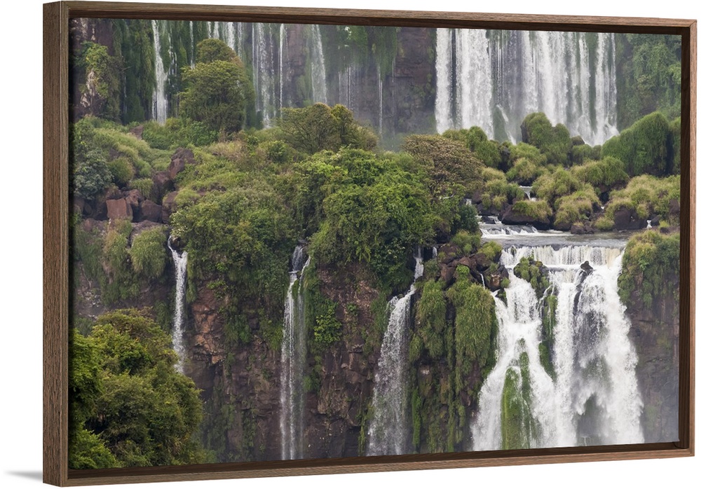 <p>Photograph of massive waterfalls flowing down over lush jungle cliffs.</p>