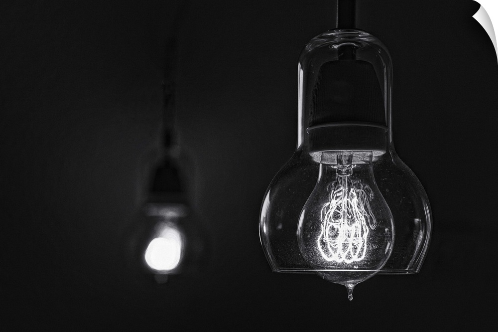 <p>Two small glass lamps with incandescent light bulbs</p>