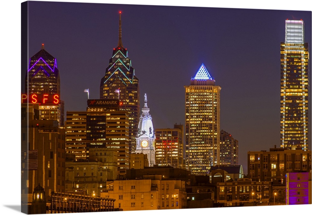 Illuminated cityscape at night, Philadelphia, Pennsylvania