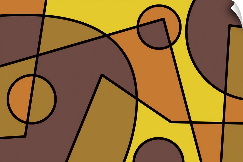 <p>Geometric abstract design in gold, orange and violet.</p>