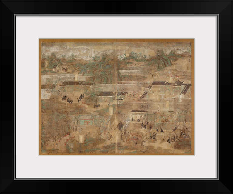 <p>1069. Color on figured silk. 190 x 140 cm (74.80 x 55.12 inches). Tokyo National Museum, Tokyo, Japan. Two (one pair) of ten panels depicting places and events related to the life of Prince Shotoku. These paintings were originally on fixed doors at Horyu-ji.</p>