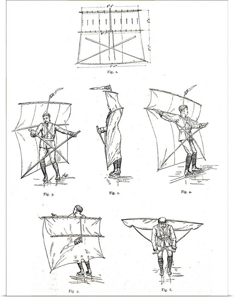 <p>Illustration depicting a man sail skating. Dated 19th century.</p>