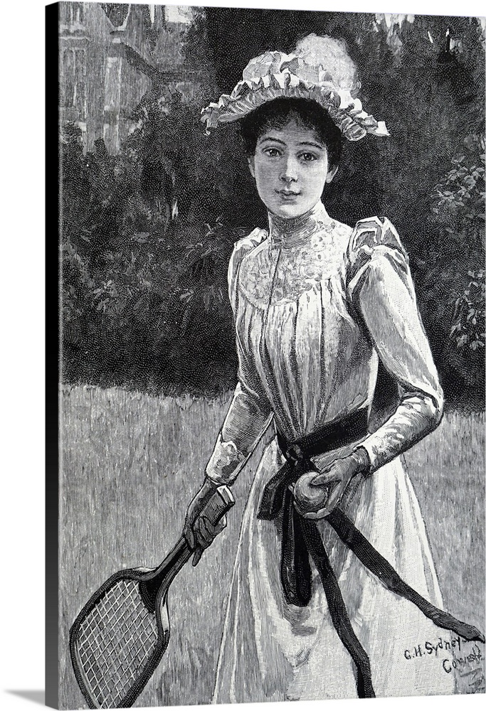 <p>Illustration depicting a woman dressed for a game of tennis. Dated 19th century.</p>