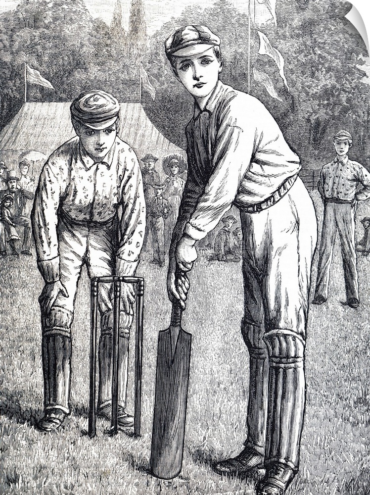 <p>Illustration depicting schoolboys playing cricket at Harrow School. Dated 19th century.</p>