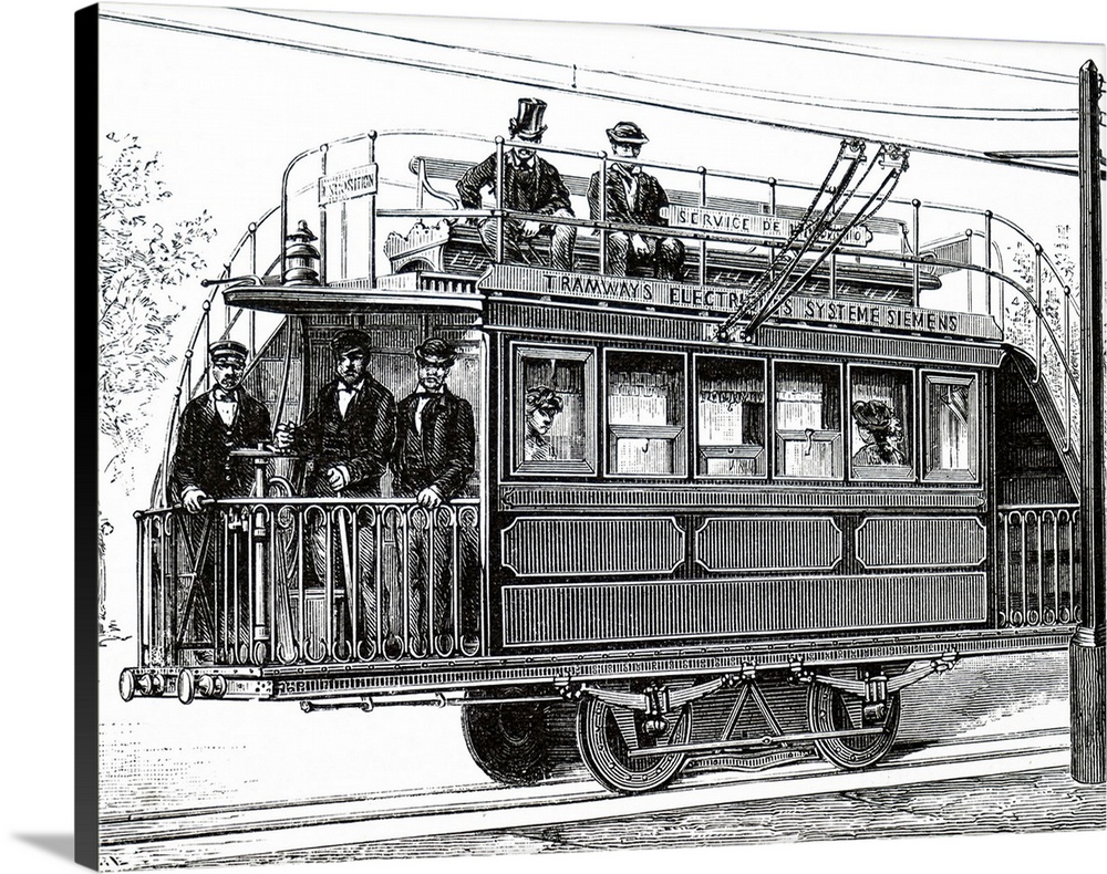 <p>Illustration depicting a Siemen's electric tram at the Paris Electricity Exhibition, 1881. Carl Wilhelm Siemens, a Germanborn engineer and entrepreneur. Dated 19th century.</p>