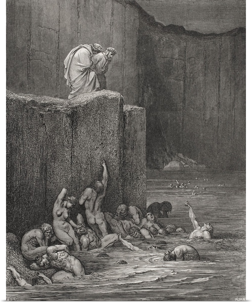 <p>Illustration For Inferno By Dante Alighieri Canto XVIII, Lines 116 And 117, By Gustave Dore, 1832-1883, French Artist And Illustrator.</p>