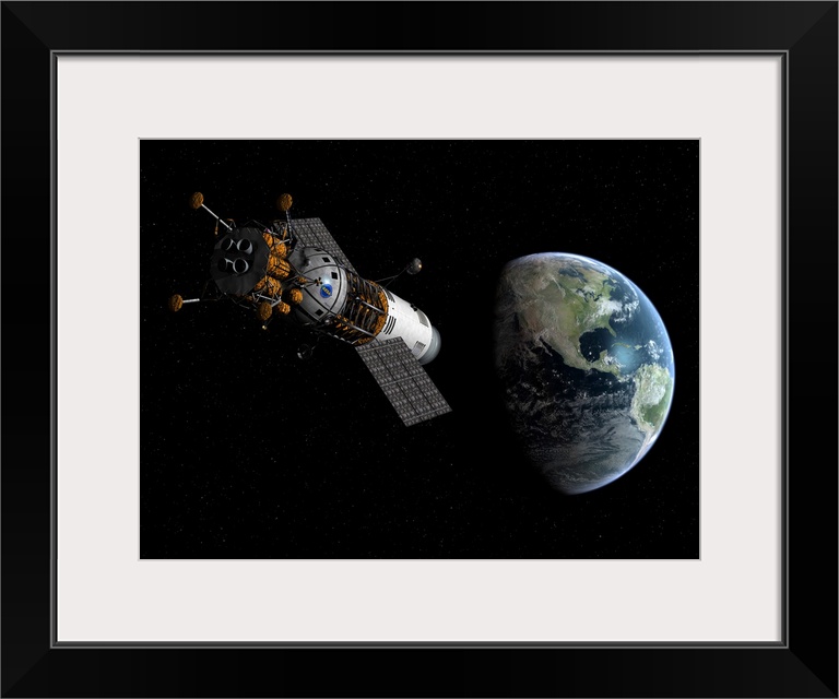 <p>Illustration of a lunar tug propelling itself into Earth orbit.</p>