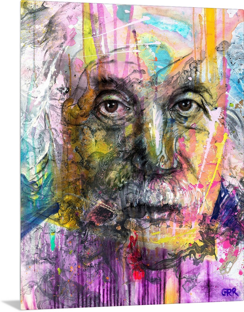 <p>Illustration of a man's face with colourful abstract patterns surrounding it</p>