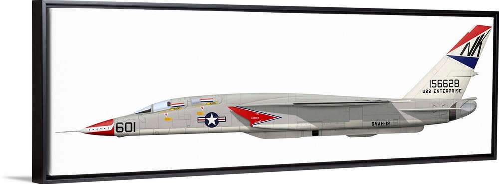 <p>Illustration of an RA-5C Vigilante reconnaissance aircraft. RA-5C initially served with RVAH-14, then RVAH-9 before seeing its operational days out with RVAH-12 on USS Enterprise. Retired to China Lake, the Vigilante spent many years in the AMARC bone yard before allocated to Tolicha Peak Range, Nevada.</p>