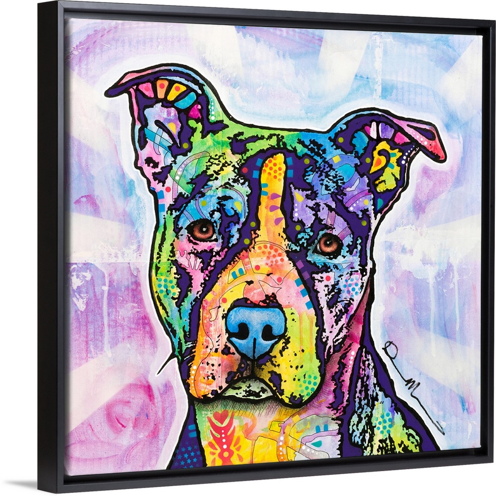 <p>Square art with an illustration of a pit bull with colorful abstract designs all over.</p>