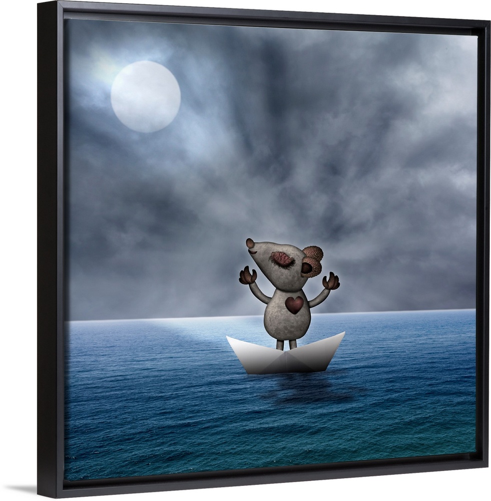 <p>Cute mouse in a paper boat in a large ocean declaring how amazing and awesome he is to the world.</p>