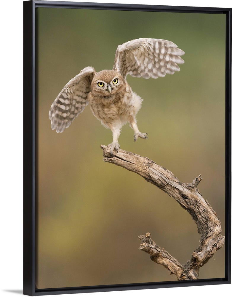 <p>Cute Burrowing Owl balancing on a branch with its wings outstretched.</p>