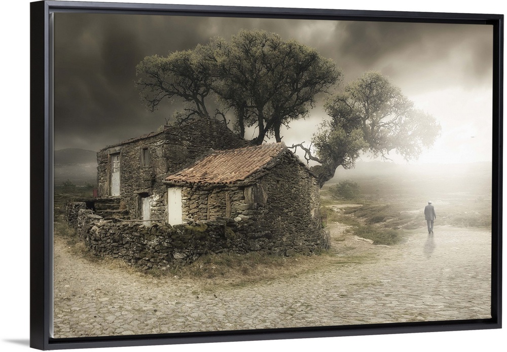 <p>Conceptual photograph of a man walking away from a countryside cottage.</p>