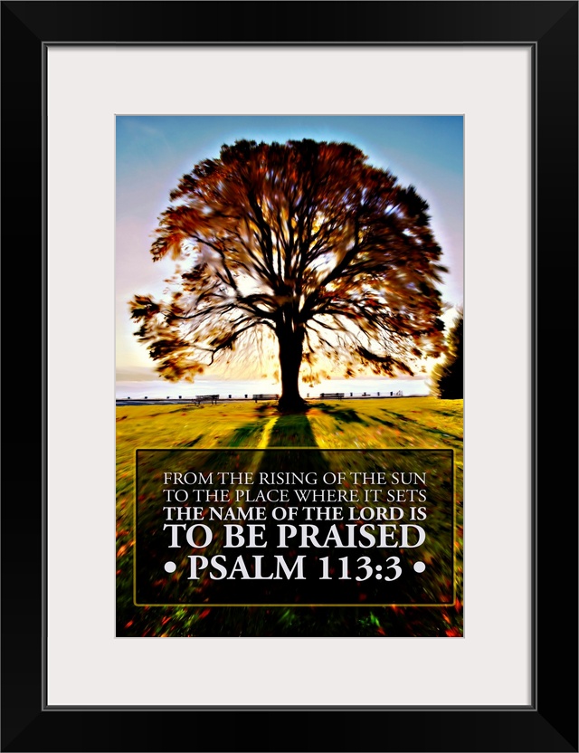 <p>Image Of A Backlit Tree In Autumn Against A Blue Sky With Scripture From Psalm 113:3</p>