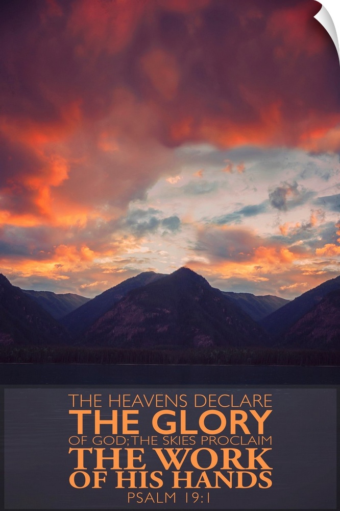 <p>Image Of A Red Sky Over A Rugged Mountain Range With Scripture From Psalm 19:1</p>