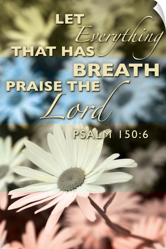 <p>Image Of Flowers In Four Colours With Scripture From Psalm 150:6</p>