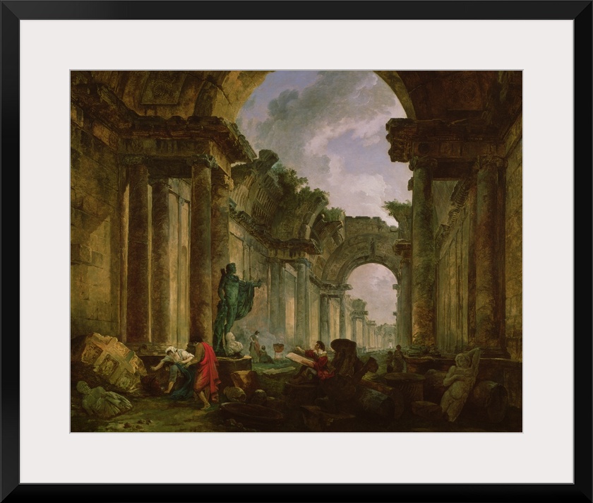 <p>XIR52980 Imaginary View of the Grand Gallery of the Louvre in Ruins, 1796 (oil on canvas) by Robert, Hubert (1733-1808); 114.5x146 cm; Louvre, Paris, France; (add. info.: Vue Imaginaire de la Grande Galerie du Louvre en Ruines); Giraudon; French, out of copyright</p>