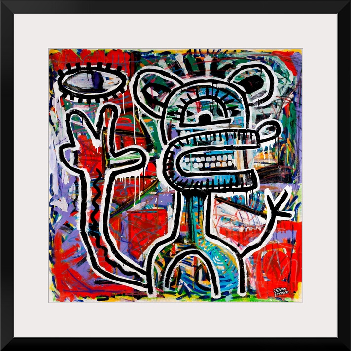 <p>Contemporary abstract painting of a mouse like figure in an urban art spray can style.</p>