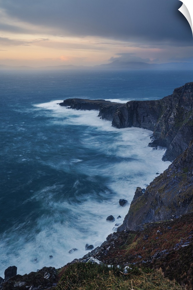 <p>Geokaun Mountain and Cliffs along the Atlantic Coast in Ireland before a sunset storm.</p>