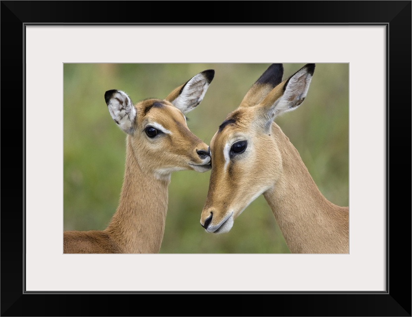 <p>ImpalaAepycerus melampusFawn grooming motherSerengeti National Park, Tanzania</p>
