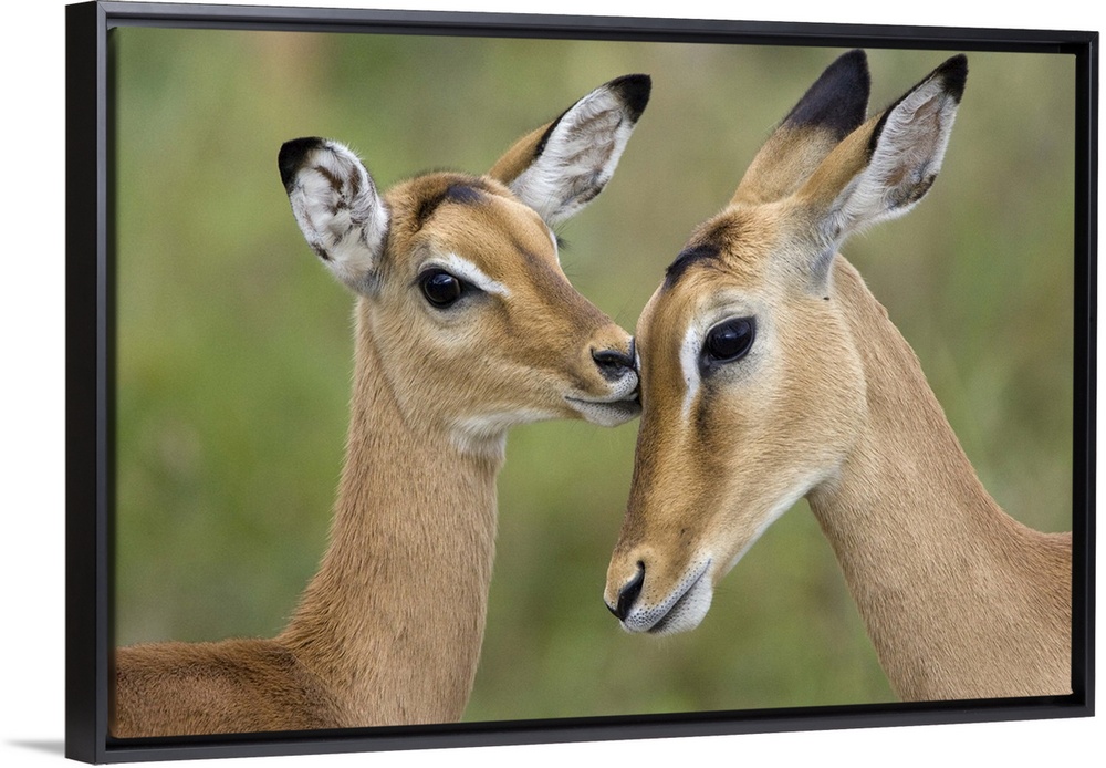 <p>ImpalaAepycerus melampusFawn grooming motherSerengeti National Park, Tanzania</p>
