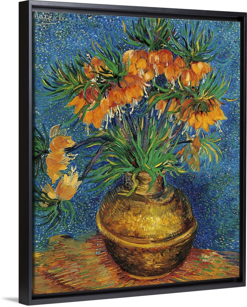 <p>Imperial Crown Fritilaria in a Copper Vase, by Vincent Van Gogh, 1886 - 1887 about, 19th Century, oil on canvas, cm 73 x 60,5 - France, Ile de France, Paris, Muse dOrsay, RF1989. All. Still Life with Imperial Crown Fritilaria flowers brown orange azure li</p>