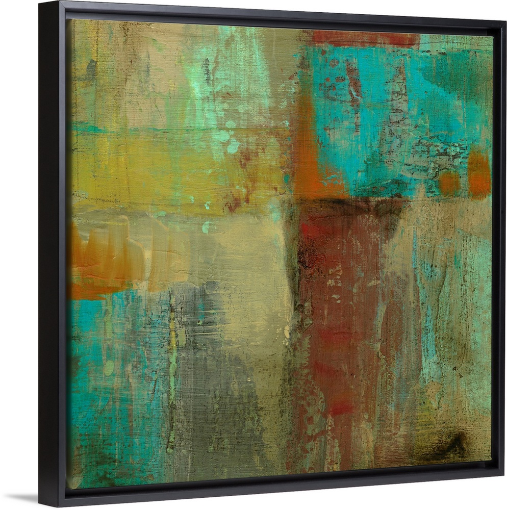 <p>Square abstract painting on canvas of various colors painted together.</p>