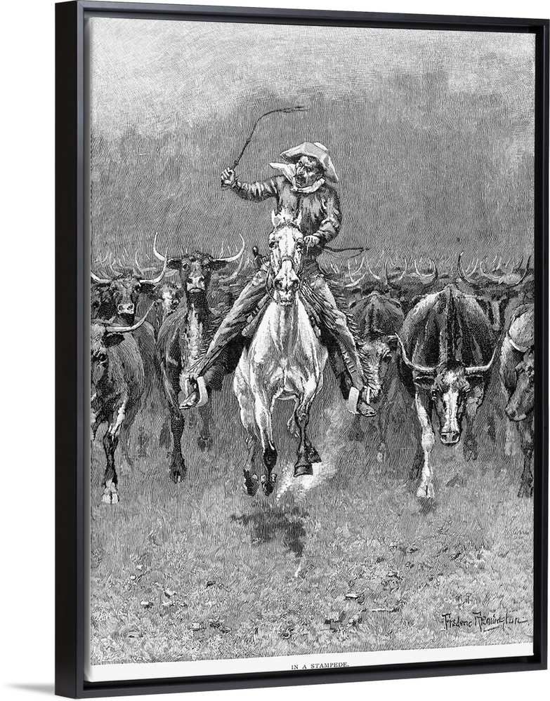 <p>In A Stampede. Wood Engraving, 1888, After A Drawing By Frederic Remington (1861-1908).</p>