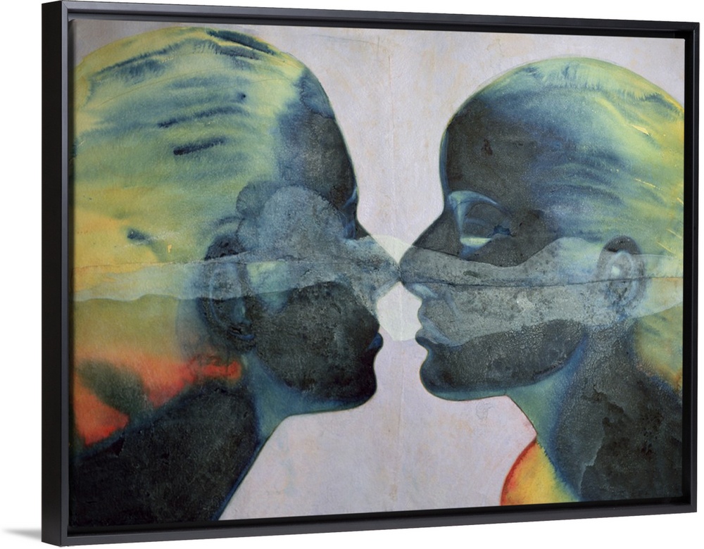 <p>Contemporary watercolor painting of two people face to face.</p>