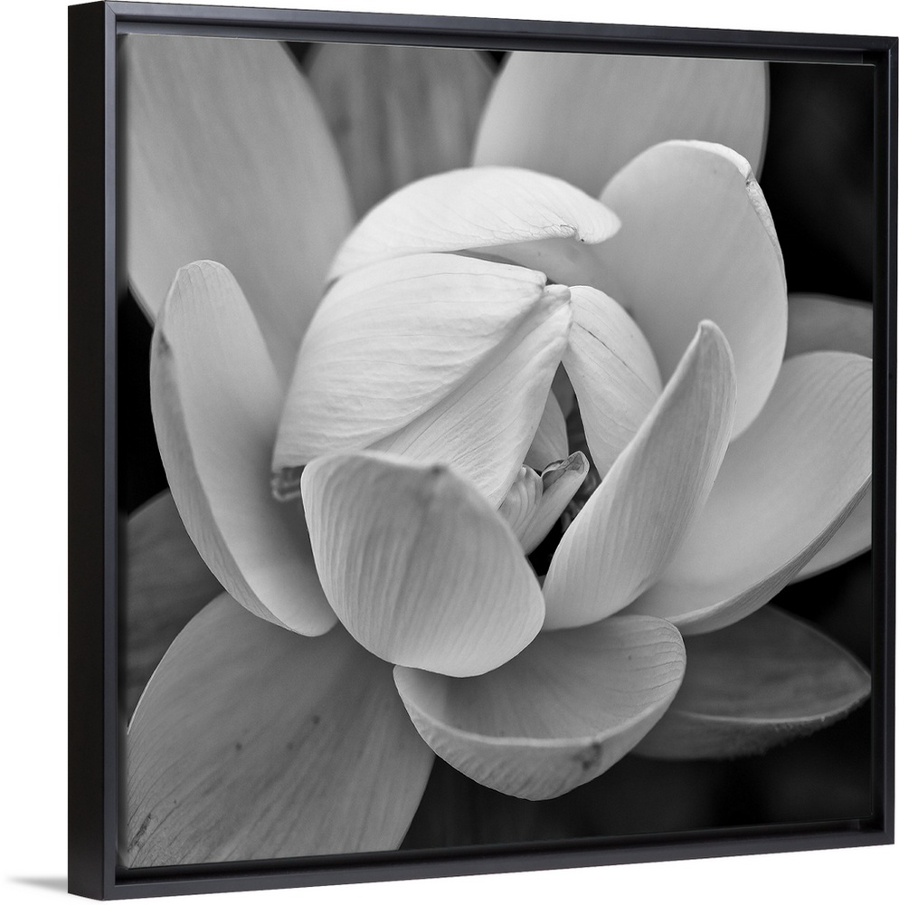 <p>A black and white macro photograph of a flower in bloom.</p>