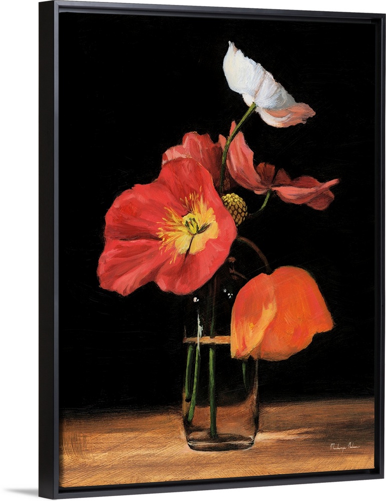 Art Traditional Black and White Wall Art White Contemporary Art Midnight Flora Florals Painting Red Wall Art