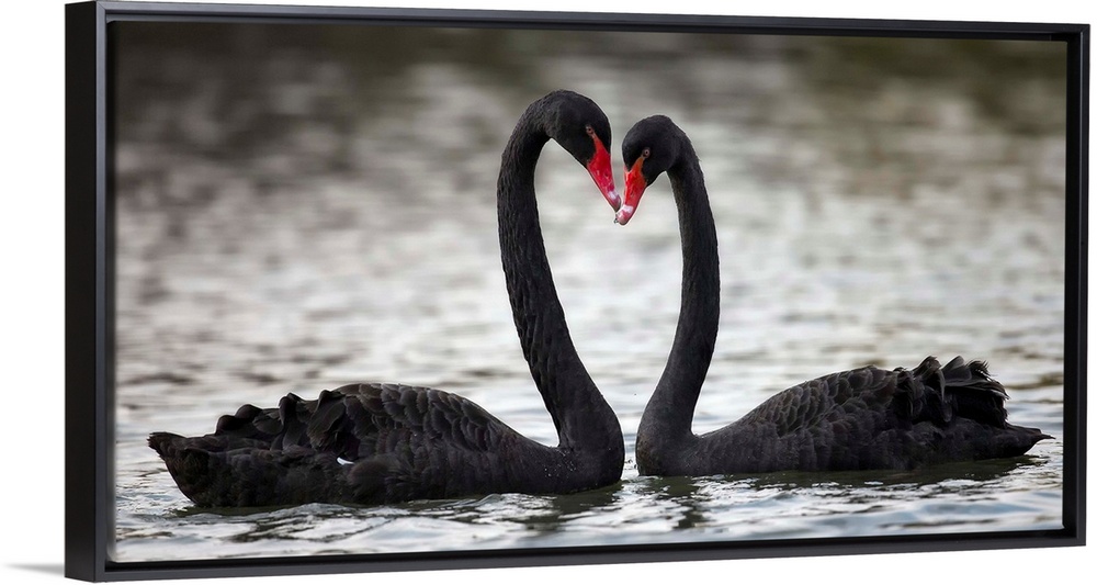 <p>A photograph of two black swans facing each other and making the shape of a heart with their necks.</p>