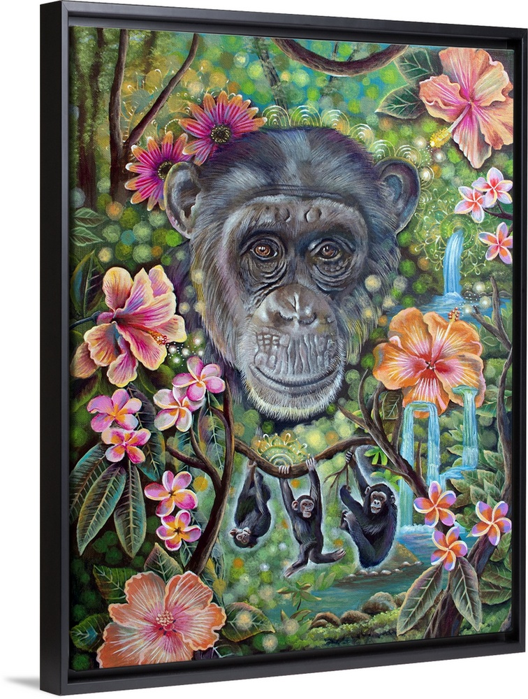 Contemporary Art Tropical Flowers Rainforest Painting Wildlife Monkey and Ape