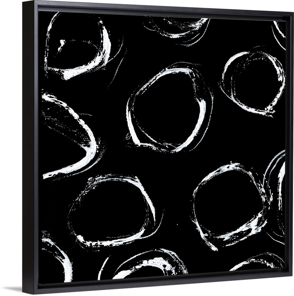 <p>A square abstract of unrefined white circles against a black backdrop.</p>