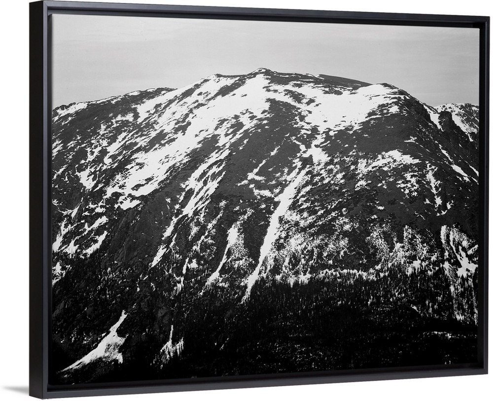 <p>In Rocky Mountain National Park, full view of barren mountain side with snow.</p>