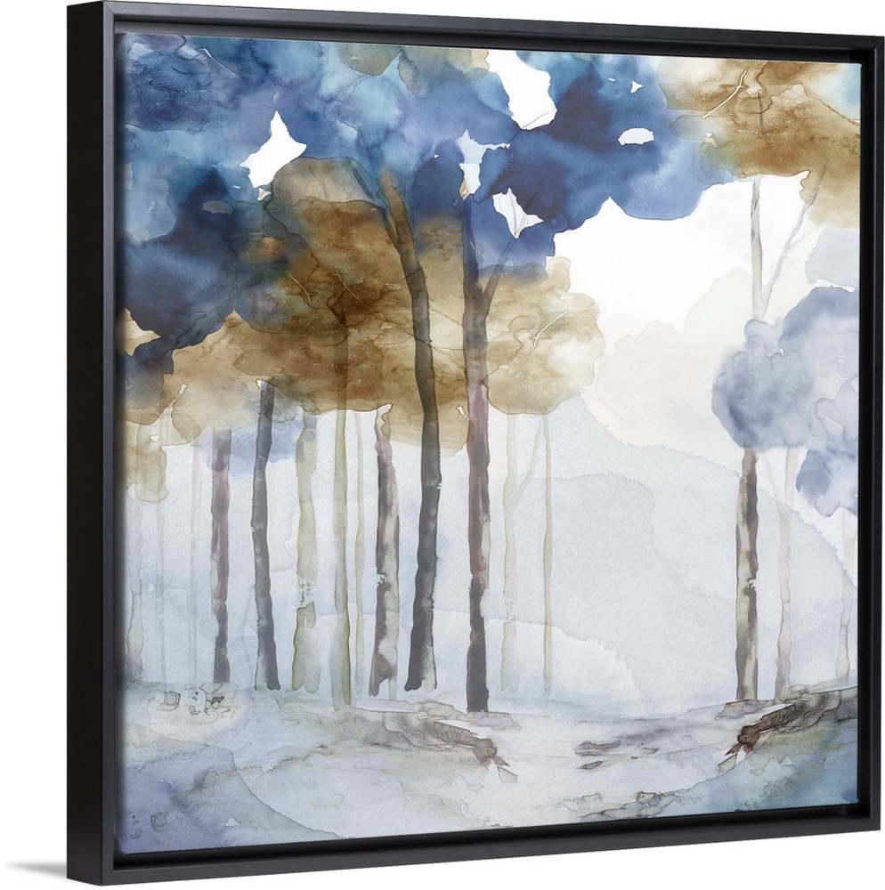 <p>Abstracted forest painting in blues and browns.</p>