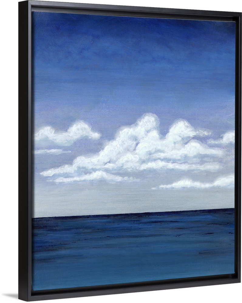 <p>Contemporary decor art of a seascape under puffy clouds.</p>