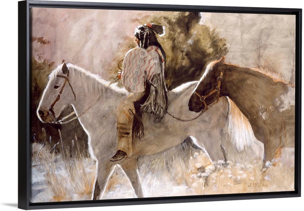<p>Contemporary western theme painting of a native American man on horseback.</p>