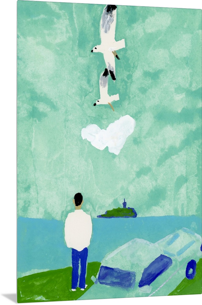Art Asian Art Contemporary Art Rivers, Lakes, and Oceans Green Wall Art Hiroyuki Izutsu Seascapes Painting Crane