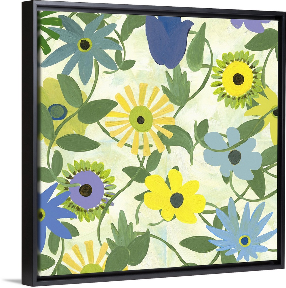 <p>This botanical art print and print on demand canvas was created with original illustrations then scanned in and layered for texture and depth. Don't miss it's companion piece. Perfect for office space, lobby or restaurant and residential as well. I created this piece from a series of small acrylic florals and digitally wove them together into a spring mix.</p>
