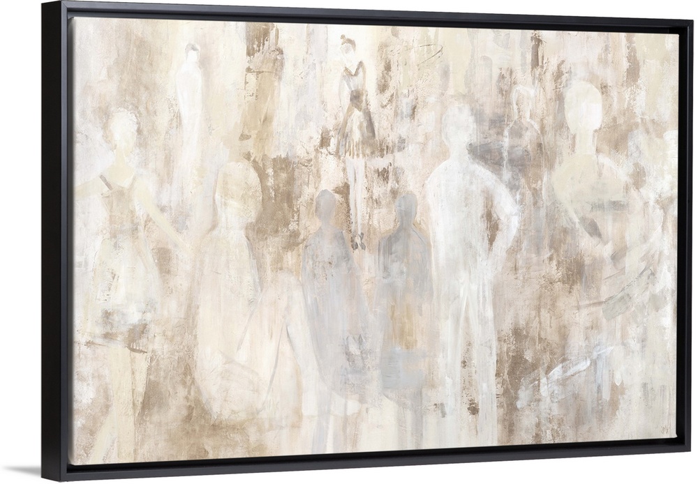 <p>Contemporary abstract painting in shades of white with subtle figures.</p>