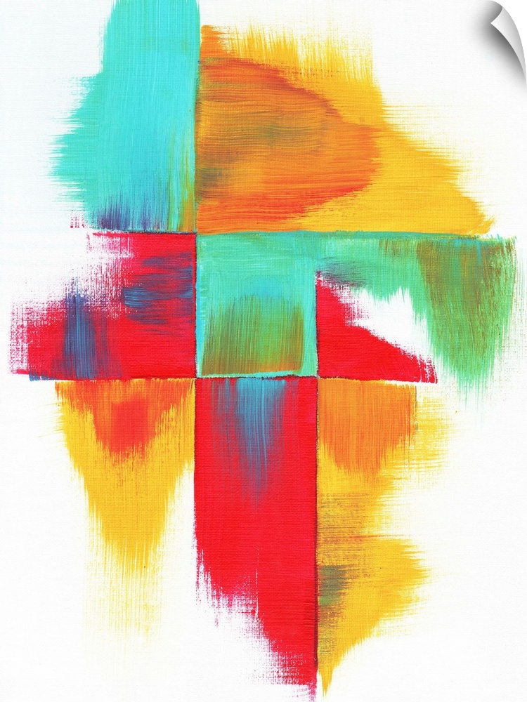<p>Contemporary abstract painting using bright colors and geometric formations</p>