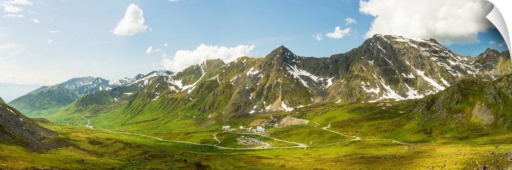 <p>Panorama view of Independence Mine State Historical Park from Gold Cord Lake, Hatcher Pass, Alaska.</p>