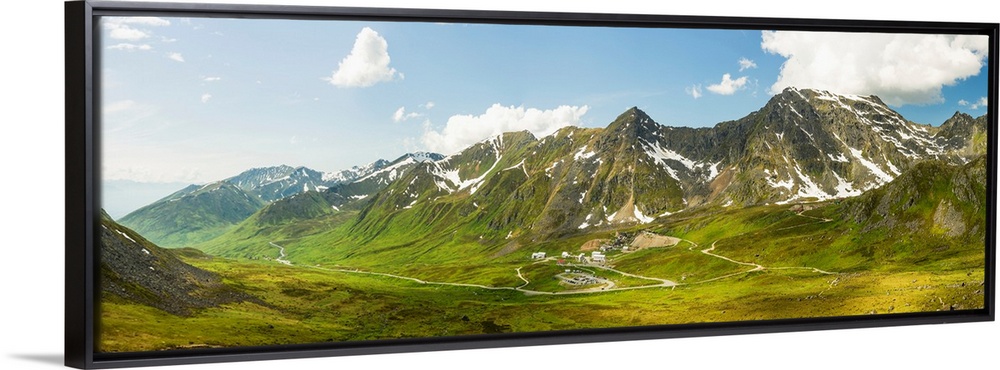 <p>Panorama view of Independence Mine State Historical Park from Gold Cord Lake, Hatcher Pass, Alaska.</p>