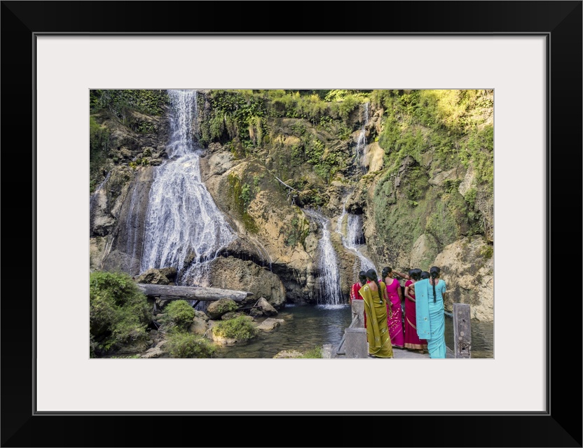 <p>India, Andaman and Nicobar Islands, Andaman Islands, Little Andaman, Indian women at White Surf Falls</p>