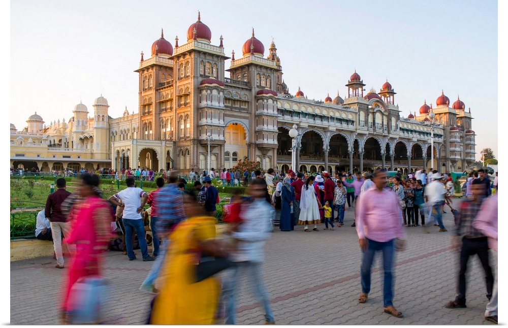 <p>India, Karnataka, Mysore, City Palace, People Walking Outside The Maharaja's Palace</p>