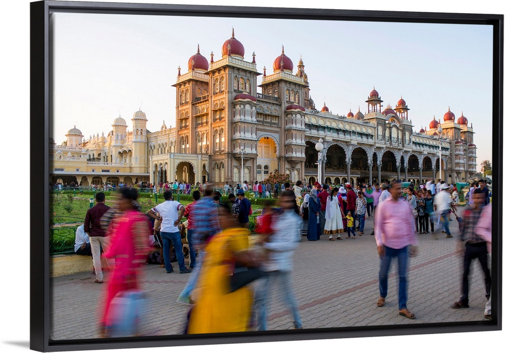 <p>India, Karnataka, Mysore, City Palace, People Walking Outside The Maharaja's Palace</p>
